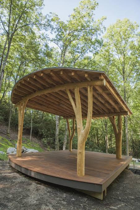 A stage or gazebo area for guest speakers, classes, and special events.
